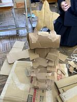 3年生は、図工で段ボールを使って、自分好みの部屋をつくっています。クリスマスツリーです。