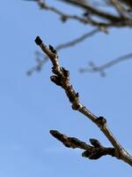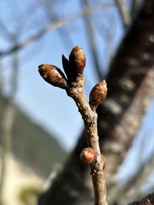 記念樹として植えられている河津桜は、膨らみを見せ始めています。