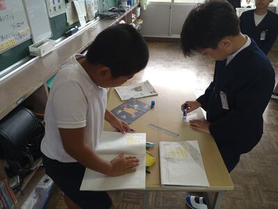 1年生は、絵日記を修正中。しっかりとした絵日記がいっぱいありました。