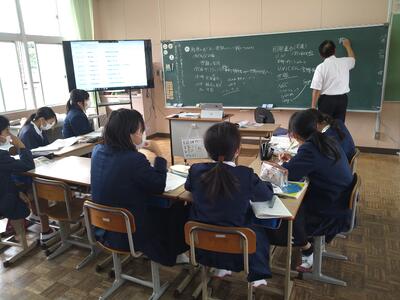 さて、二年生は国語の文法の学習です。「主語と述語」です。私が行ったときには、文末の表現がどうなっているかについて特徴を考えているところでした。