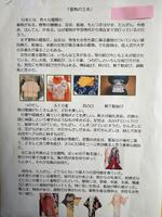 6年生は、「鳥獣戯画を読む」という論説文を読んで学んだことを生かして、自分で日本文化について解説文を作成します。読ませていただくと、それぞれが興味を持った日本文化に歴史や職人の工夫、作り方、現在に至るまでの変化、現状などくわしく、そして読み手を意識した写真などを使った工夫で、どれもとても読みやすい文章でした。下は1ページ目だけをうっすらと紹介します。