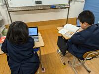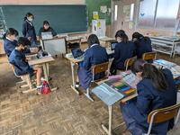 今日は、天草市教育委員会の先生、御所浦中学校の先生、東京からの学生さん(キャラバン隊)が来校されました。2時間目の5年生の国語の授業では、タブレット端末に自分の考えを残しながら、話し合いが行われました。児童は、緊張しながらも話し合いが少しずつ活発になっていく姿が見られました。緊張の中での授業、これも大切な経験です。