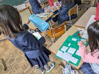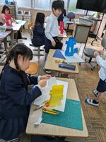 2年生教室をののぞいてみますと図工の時間です。立体的に窓を作って、その窓を開くといろんなすきなもの、考えたものが登場する工作です。創意工夫しながら一生懸命作っていました。