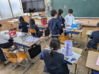 4年生は、勇志国際高校近くの入り江で伝馬船の体験を行いました。地域の方々のご協力をいただきながら、全員が艪をこいで舟を進める貴重な経験をしました。風が吹く中での操縦は容易ではなく、悪戦苦闘しながらも和船ならではの操船を体感することができました。 ※伝馬船(てんません)とは、日本で使われた木造の小型和船で、本船と岸の間で荷物や人を運ぶために用いられた船です。