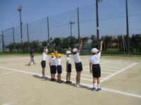 ドライバーの方に見えるように手をまっすぐ伸ばして渡る→あいさつをするなどを担当から指導したあと、登校班ごとに練習をしました。