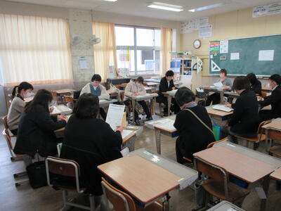 当日は、第七中学校区の教職員が一堂に会し、健康教育部会、生徒指導部会、学力充実部会に別れ、1年間の取組の検証と次年度の志向について意見交換しました。