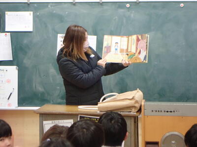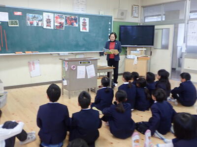 令和8年2月5日(木)の朝自習時間に、地域の女性の会及びPTA図書委員の方々による、図書の読み聞かせがありました。