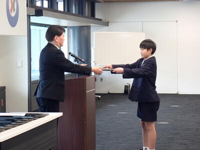 令和8年2月24日(火)に八代市役所で行われました、「やつしろの笑顔・未来を創る児童生徒表彰式」にて、本校の6年生を中心とした有志によるボランティア清掃が「特別賞」を受賞しました。会には、代表として6年生1人が参加し、凜とした姿で賞状を受け取りました。