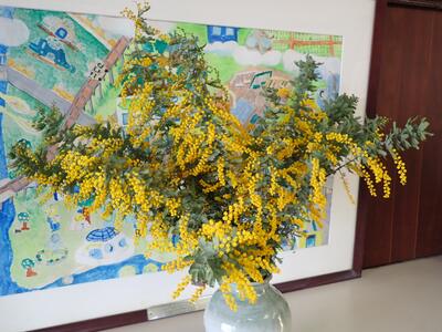 本校でも、地域の方からいただいた「ミモザの花」を玄関などに飾り、周囲の女性への感謝を伝えたり、社会的なジェンダー平等について考えたりするようにしています。