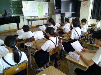当日は、第一中学校、第七中学校、代陽小学校、松高小学校、八代小学校、八代支援学校から教職員約40人が、授業を公開した1年1組、3年1組、5年1組の授業参観や授業研究会に参加されました。