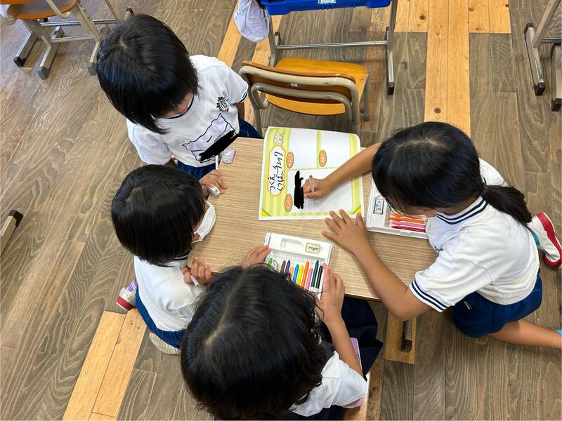 夏休みの宿題の一つに、思い出を絵日記に書いてもらいました。その絵日記をみんなに伝え合い、相手の絵日記に対して一つ質問をするという活動をしました。お互いに伝えあったら、シールを一つずつお互いに貼りました。途中で、「えー!そんなことがあったのー⁉︎」という声も聞こえてきました!