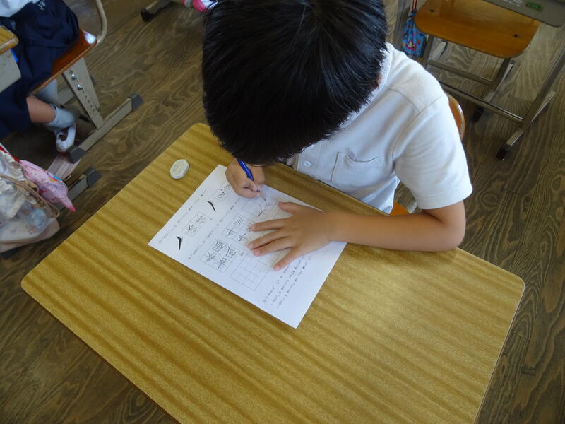 とてもいい姿勢で取り組むことができていますね!左手もしっかりと添えて丁寧に書けています。