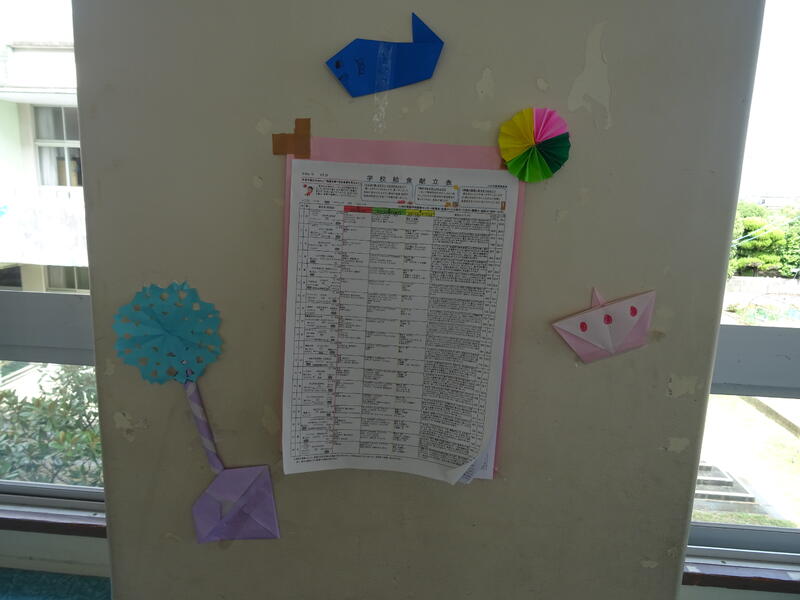 次に、掲示係です。季節のものを折り紙を用いて作成し掲示をしたり、新聞を作成したりしています。