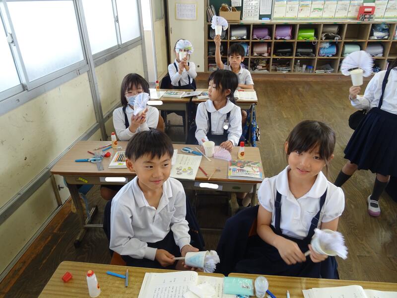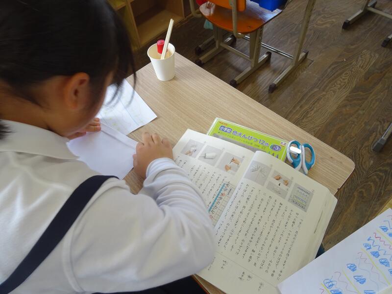 国語で「紙コップ花火の作り方」の学習をしています。作り方の説明の仕方に気をつけて読み、実際に紙コップ花火を作ってみました。