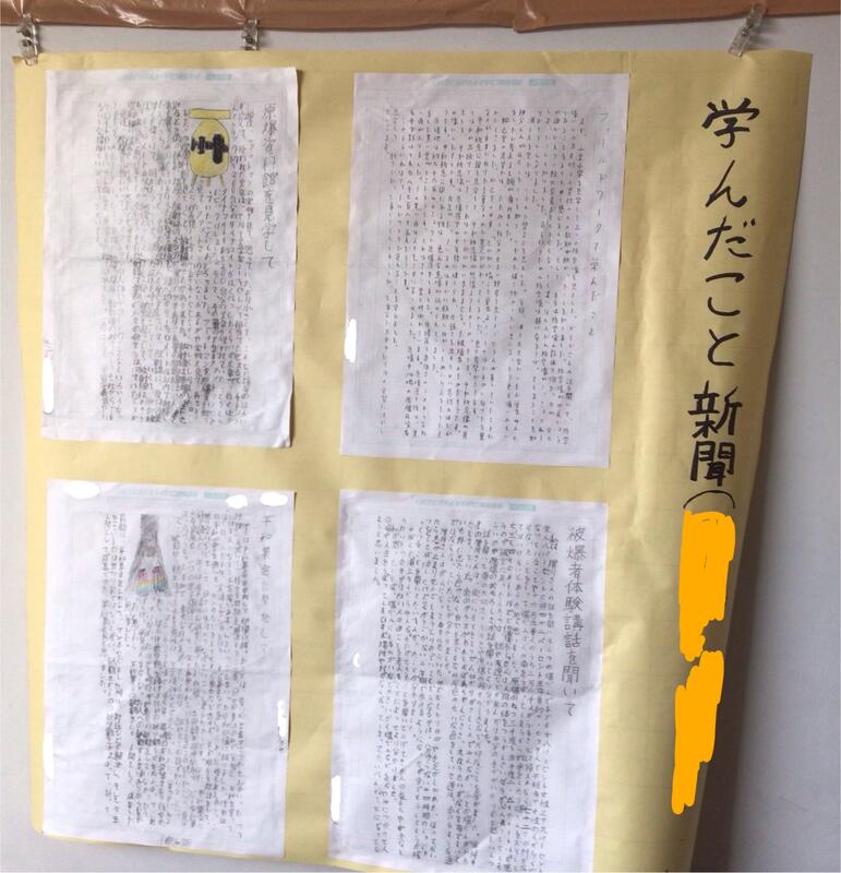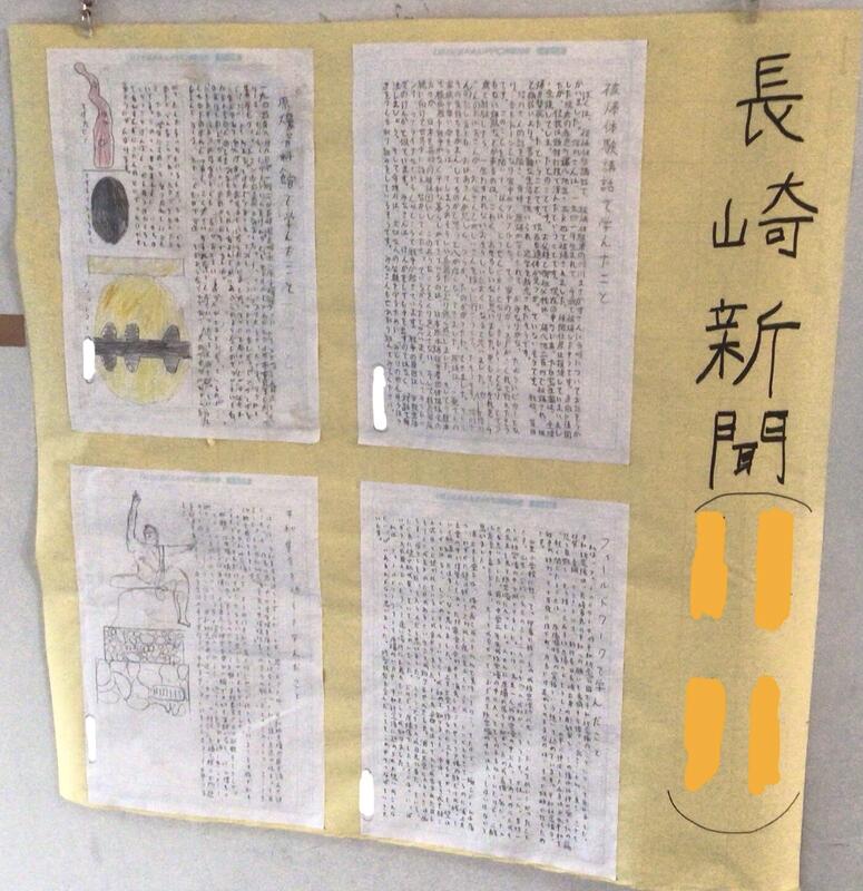 修学旅行が終わって約3週間。帰ってきてから、学習のまとめとして、班ごとに新聞でまとめました。