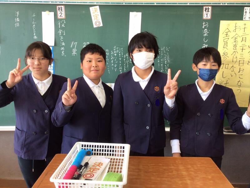 司会は、お楽しみ会の実行委員さんの4名で行いました。学級会の進行頑張りましたね。