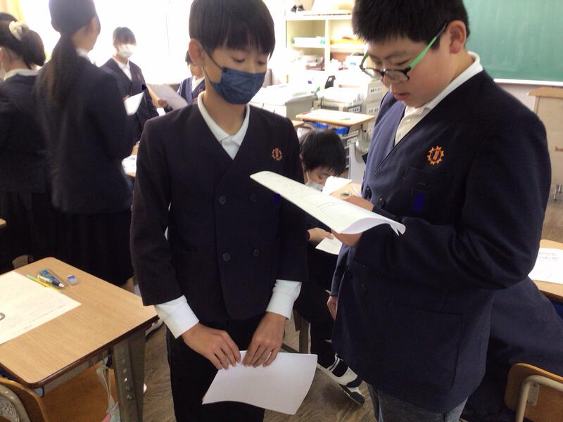 顔を向け合い、真剣に聞いてくれていました。発表後には、たくさんの友達が発表者に返しの言葉を伝えていました。6年間一緒に過ごしている子どもたちですが、新たに気付いた一面もあったようです。