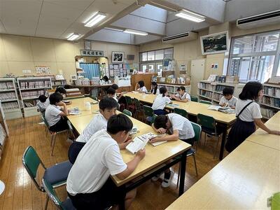 5年生は、金曜日の5時間目に図書の時間を設けています。図書室に行き、本の返却や貸し出しを行い、自由に本を読む時間としています。
