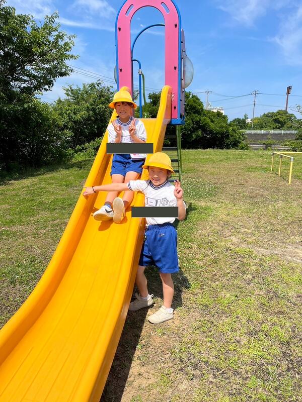 テニスコート隣の、大硴多目的運動場に公園探検に行きました。片道1.4kmの道のりを頑張って歩きました!