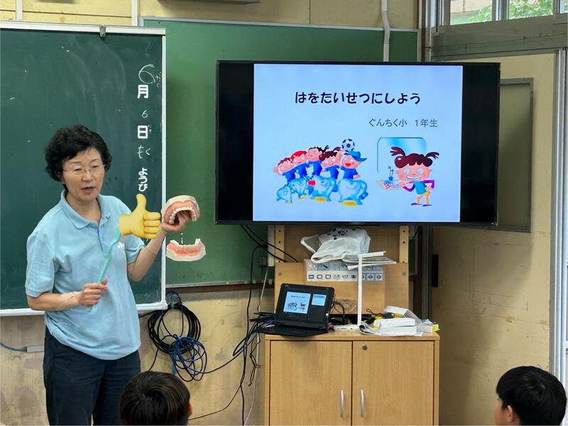 5時間目に、「虫歯を予防しよう」という学活の授業をしました。保健室のO先生に来ていただき、歯の健康についてお話していただきました。
