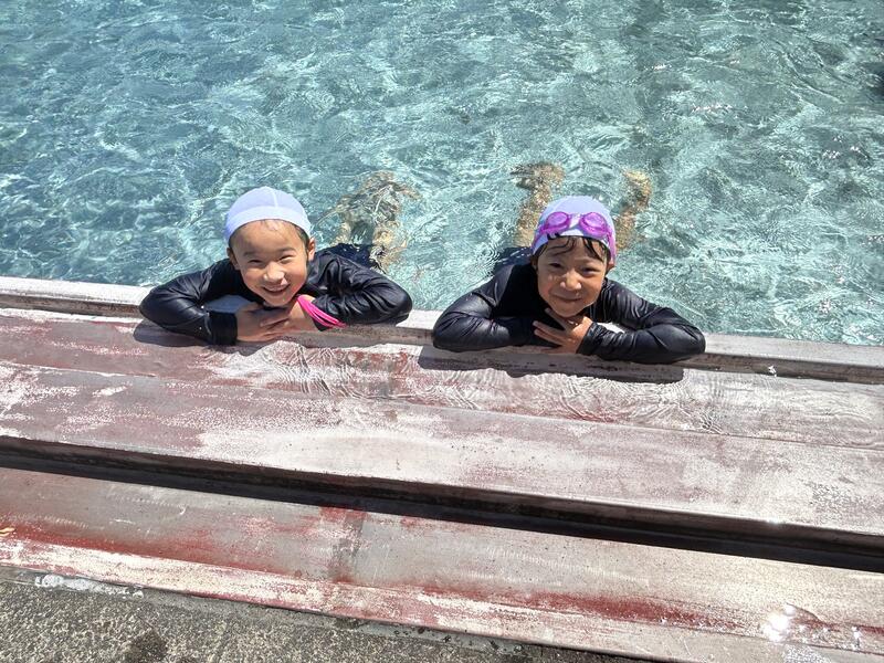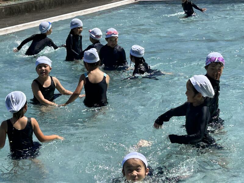 はじめてのプール、みんな大喜びで入って楽しんでいました。