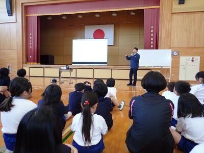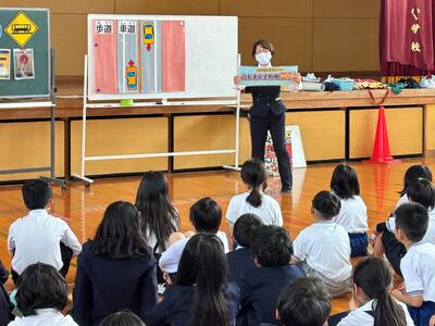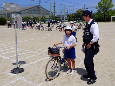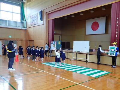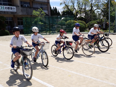 令和7年4月18日(金)に「交通教室」を行いました。子供たちは、警察や八代交通安全協会、地域の方々のご協力のもと、講義及び実技を通して安全な道路歩行や自転車の乗り方について学びました。