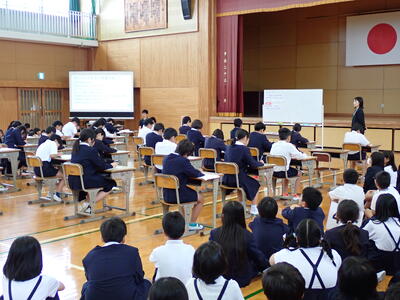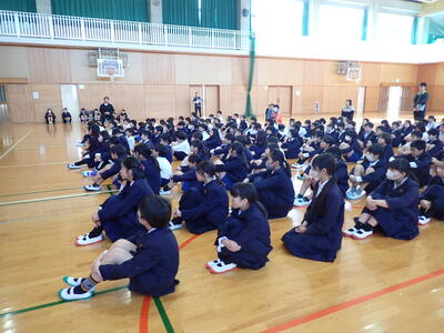 令和7年4月30日(月)、体育館で「学習集会」を行いました。
