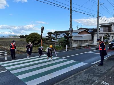 令和7年4月17日(木)、15日まで地域の交通指導員やPTAの方々による登校時の春の交通安全運動が行われていました。おかげさまで子供たちは安全な歩行を再確認したと思います。