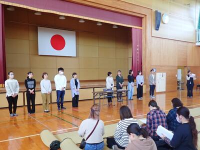 これは、「授業中の学習規律」について、全児童が共通理解し、共通実践することを目的としたもので、今回は5年生がモデルとなり、本校で目指す学習規律について全児童に示しました。