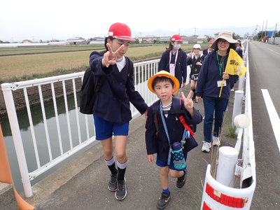 1年生のキョロキョロしながら興味津々に見て回る姿と、2年生の一生懸命にリードしようとする姿が、見ていて微笑ましかったです。