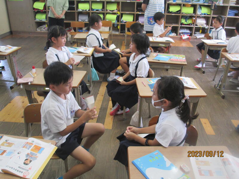 9月12日(火)の5時間目に、幼保小連携の一環として、郡築しおかぜ保育園、白島ぎんが保育園、松寿幼稚園の先生方が授業参観にきてくださいました。大好きな園の先生方が見守る中、子どもたちは張り切って算数「大きさくらべ」の学習に臨みました。それぞれの園で教えていただいたことを守って、小学校でも頑張っています。