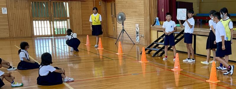 活動後には、1年生と6年生で振り返りの発表も行うことができました。最後に、「明日は、震源地遊びをします。」との予告を聞いて、「明日も遊べるの?!」と1年生は大喜び。全4回の実施だそうです。6年生ともっともっと仲よくなれそうです。