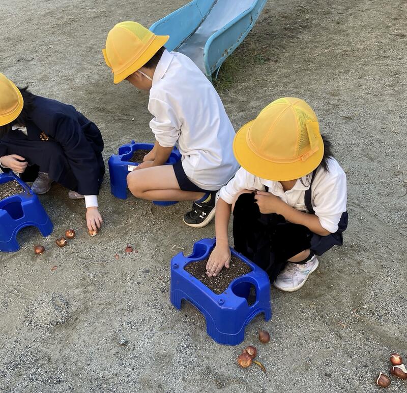 10日(木)の生活科の時間に、自分のはちに植えました。「どんな色の花が咲くかな。」「◯色だったらいいな。」楽しそうなつぶやきがたくさん聞こえてきました。