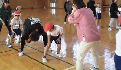 11月11日(土)の午前中、体育館で1年生の親子レクリエーションがありました。学級委員さんを中心に1年生も保護者の皆さんも楽しめる競技を考えて準備してくださいました。じゃんけん列車、ボール送り、背中合わせリレー、人さし指リレー、しっぽとり鬼ごっこなど。