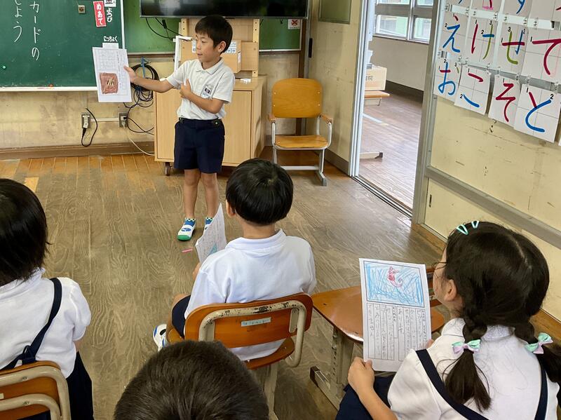 22日に紹介カードの発表会を行いました。友達の発表で13種類の生き物のすごいところを知ることができました。