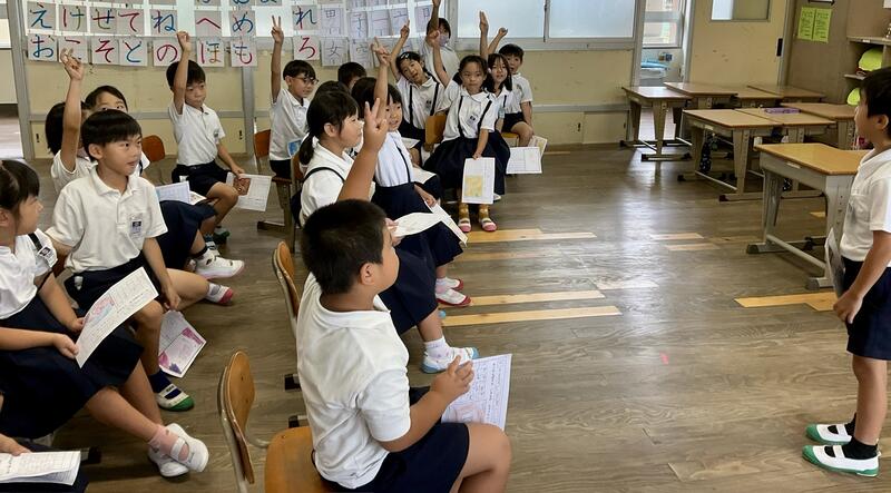9月12日(火)の5時間目に、幼保小連携の一環として、郡築しおかぜ保育園、白島ぎんが保育園、松寿幼稚園の先生方が授業参観にきてくださいました。大好きな園の先生方が見守る中、子どもたちは張り切って算数「大きさくらべ」の学習に臨みました。それぞれの園で教えていただいたことを守って、小学校でも頑張っています。