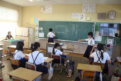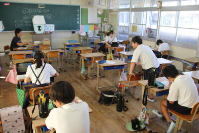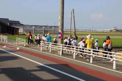 涼しい気候になり熱中症のリスクが低くなってきました。そこで、各学年ではこれまで控えていた校外学習を始めました。この日は、2年生活科の学習で「まちたんけん」に出かけました。児童の安全見守りのために地域の方2人に協力していただきました。地域サポーターの皆様、ありがとうございました。