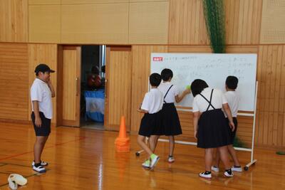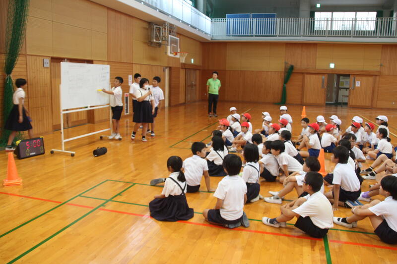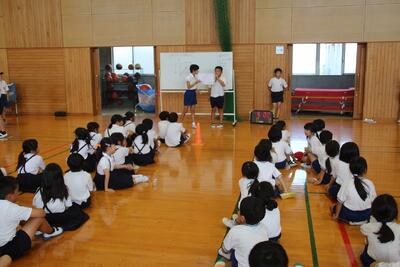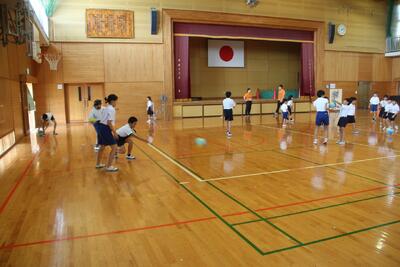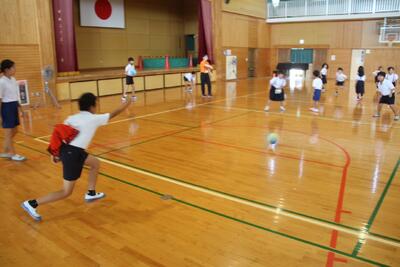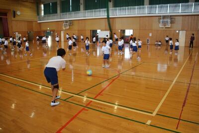 10月に入り暑さがやわらいできました。この日は、昼休みに体育館で体育委員会主催の低学年の交流遊びを行いました。1・2年生を内野にして、外野の体育委員会の児童や助っ人の5年生がボールを転がす、転がしドッジボールを行いました。1・2年生がボールをかわしたり飛び越えたりして、当たらないように走り回りました。体育館にはみんなの歓声が響き渡りました。体育委員会の皆さん、楽しい企画をありがとうございました。