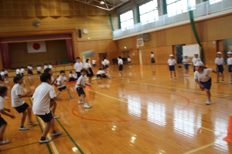 昨日に引き続き、体育委員会の主催で3・4年生の交流遊びを行いました。1回戦は赤白に分かれてドッジボール、2回戦は3年生対4年生でドッジビー(フリスビードッジボール)の対戦をしました。「みんなでなかよく、体力を上げよう!」というめあてで、勝ち負けにこだわらず楽しく運動を楽しみました。ドッジビーの対戦では、3つのフリスビーを使ったので、いろんな方向からとんでくるフリスビーを上手によけたりキャッチしたりしながらコートを走り回り、たくさん体を動かすことができました。