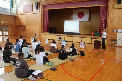 秋晴れの下、稲刈りを行いました。JAやつしろ郡築青壮年部の皆様に鎌の使い方や刈り取った後のことなどを教えていただきながら体験活動を行いました。稲穂の香り、鎌を使って「ザクザク」と切る音、稲わらが肌についてチクチクする感覚など、教科書などの資料では分からない五感を働かせた貴重な体験をすることができました。今後は収穫したお米を使ってJAやつしろ郡築婦人部の皆様のご指導の下でおにぎりパーティーをする予定です。この体験を通して、郷土を愛する心、地域の方への憧れ、自然の恵みへの感謝、食育の重要性など多くのことを学ぶ機会となりました。JAやつしろ郡築青壮年部の皆様、貴重な体験をさせていただき、ありがとうございました。