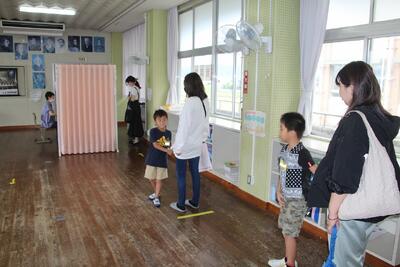 来年度入学予定児童の健康診断を行いました。親子での歯科や内科の検診後、親子が別れて活動しました。子どもたちは5年生児童に連れられて視力や聴力などの検査を受けました。保護者の方は学校からの連絡を聞いたり、親の学びプログラムの「すごろくトーク」をしたりしました。新入学児童が話の聞き方や答え方がとても上手で、来年の入学が待ち遠しく感じました。来年度入学予定の児童や保護者の皆様、ありがとうございました。