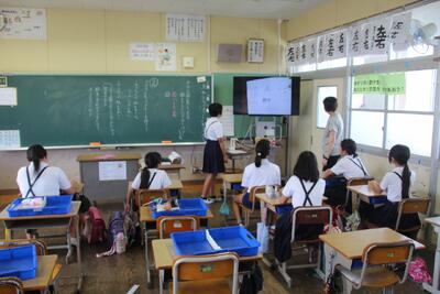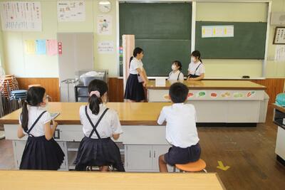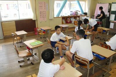 台風10号の接近で29日と30日は臨時休業日(臨時休校)でしたので、本日から2学期の再スタートでした。1年生は読書感想画、2年生は買い物の見積もり、3年生は一万をこえる数、4年生はわたしたちのくらしと水、5年生は理科の自由研究の発表、6年生は鎌倉時代のこと、について各学年で学習をしました。心のスイッチを切り替えて、いきいきと学習している郡築っ子です。