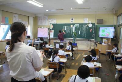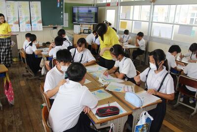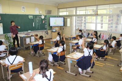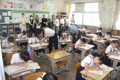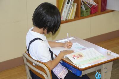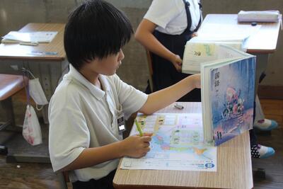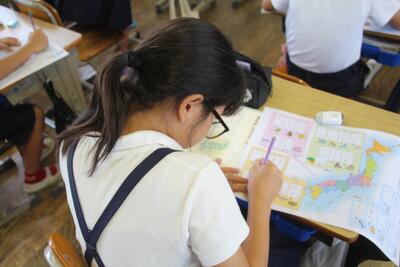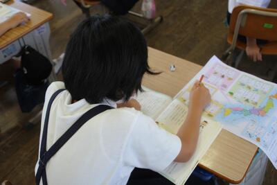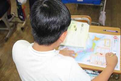 夏休みまであと2日となりました。各学級では、1学期の学習のまとめをしています。4年生は、国語科で学習した都道府県名の漢字をワークシートに書き込みました。まずは自分の力でやってみて、覚えていないものについては教科書で確認しました。普段あまり使わない漢字がいくつかあるので、夏休みに復習してほしいと思います。