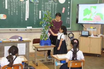 1年生が特別の教科道徳の学習を行いました。「ぼくのあさがお」という教材を使って、自然愛・動植物愛護について考えました。現在1年生は生活科の学習で「あさがお」を育てているので、登場人物の気持ちに寄り添うことができました。初任者の先生が参観する中、手の挙げ方・返事・発表の仕方・話の聞き方・ワークシートへの書き方など、この3ヶ月間の1年生の成長の跡がよく見えました。1年担任のS先生と1年生の皆さん、ステキな授業を見せてもらい、ありがとうございました。
