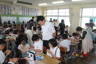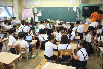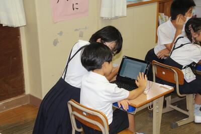 本校では、タブレットPCを使って児童がアンケートについて回答を行うことをしています。1年生がタブレットPCを使うことに慣れていないので、5年生がサポートしてくれました。アプリの開き方を教えたり、質問文を読んだりして、1年生がアンケートに答えられるようにお手伝いをしてくれました。5年生の皆さん、ありがとうございました。