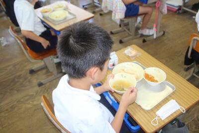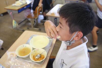 今日の給食メニューは、ソフトフランスパン・コンソメスープ・カスレ・タルト・牛乳でした。カスレとは、白いインゲン豆と肉や野菜を煮込んだフランスの伝統的な家庭料理だそうです。今月末から行われるパリオリンピックの開催に合わせたフランスの料理が提供されました。2年教室では、カスレをソフトフランスパンにつけて食べてる人が多くいました。コンソメスープやカスレの香りが教室に広がっていました。給食に関わるすべての皆様、ありがとうございました。