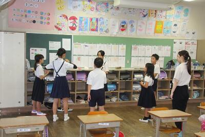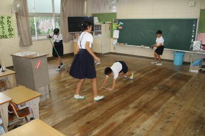 6月から縦割り班掃除を行ってきました。6年生がリーダーとなり、掃除の分担を決めたり、やり方を教えたりして異学年交流の活動してきました。この活動を通して、協働性や社会性・思いやりなどを育んでいます。よきリーダーとよきフォロアーになり、協力して取り組んでいます。