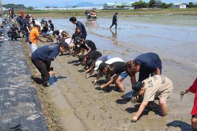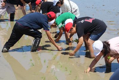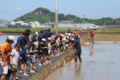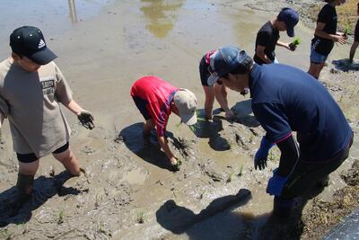 5月7日に行った種まきから約1ヶ月で苗が順調に育ち、3・4年生が田植えを行いました。JAやつしろ郡築青壮年部や職員、総勢23名の方に教えていただきながら、活動を行いました。裸足で泥の中に入るときの歓声やバランスを崩して転びそうになる悲鳴が、田んぼに響き渡りました。泥だらけになりながらも一つ一つ植えることができました。保護者の皆様、衣服の洗濯をお願いします。JAやつしろ郡築青壮年部や職員の皆様、ありがとうございました。