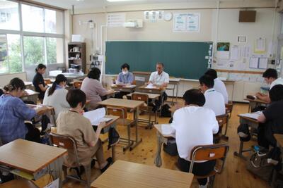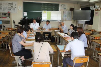第七中学校区小中一貫・連携教育第1回合同研修会を第七中学校で行いました。全体会後に、七中・昭和小・郡築小の三校の先生たちが、生徒指導部会・学力充実部会・健康教育部会の3つの部会に分かれて、話し合いました。各部会で方向性を決め、それを各校で実践していきます。子供たちの9年間の育ちと学びを大切にして、小中学校のなめらかな接続を図っていきます。