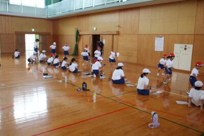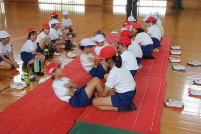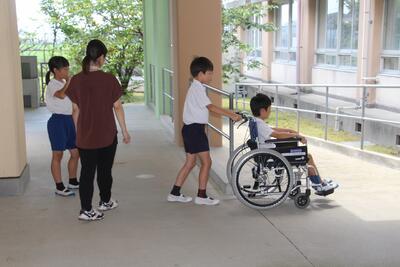 八代市社会福祉協議会の方をゲストティーチャーにお招きして、4年生が福祉体験学習を行いました。乗る人、後ろから押す人の役割分担をして、車椅子の使い方について体験しました。体育館にマットを並べたり、スロープを下ったり上ったりして、乗っている人のことを考えた車椅子の操作活動をしました。車椅子を安全に操作することはとても難しいことが分かりました。八代市社会福祉協議会の皆様、ありがとうございました。